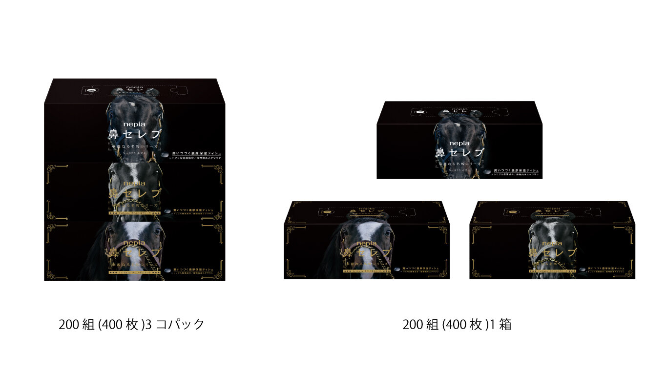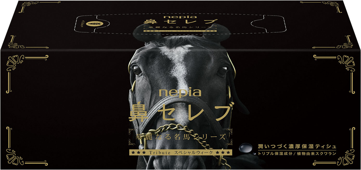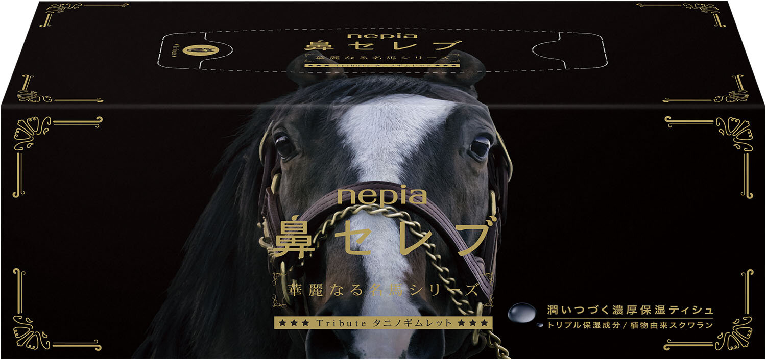 風邪や花粉への対策が気になり始める冬シーズン。さらに午年の華やかな新年を目前に控え、競馬界や馬をテーマにした話題にも注目が集まる中、年内のビッグレースが続き、シーズンのクライマックスを迎えるこの時期は、一年で最も名馬に注目が集まる季節です。こうした時期に合わせて登場する「ネピア 鼻セレブティシュ 華麗なる名馬シリーズ」は、名馬の力強さを表現したシックなデザインと、鼻セレブならではのしっとりとした肌ざわりで、季節の暮らしに特別感を添える限定企画品です。