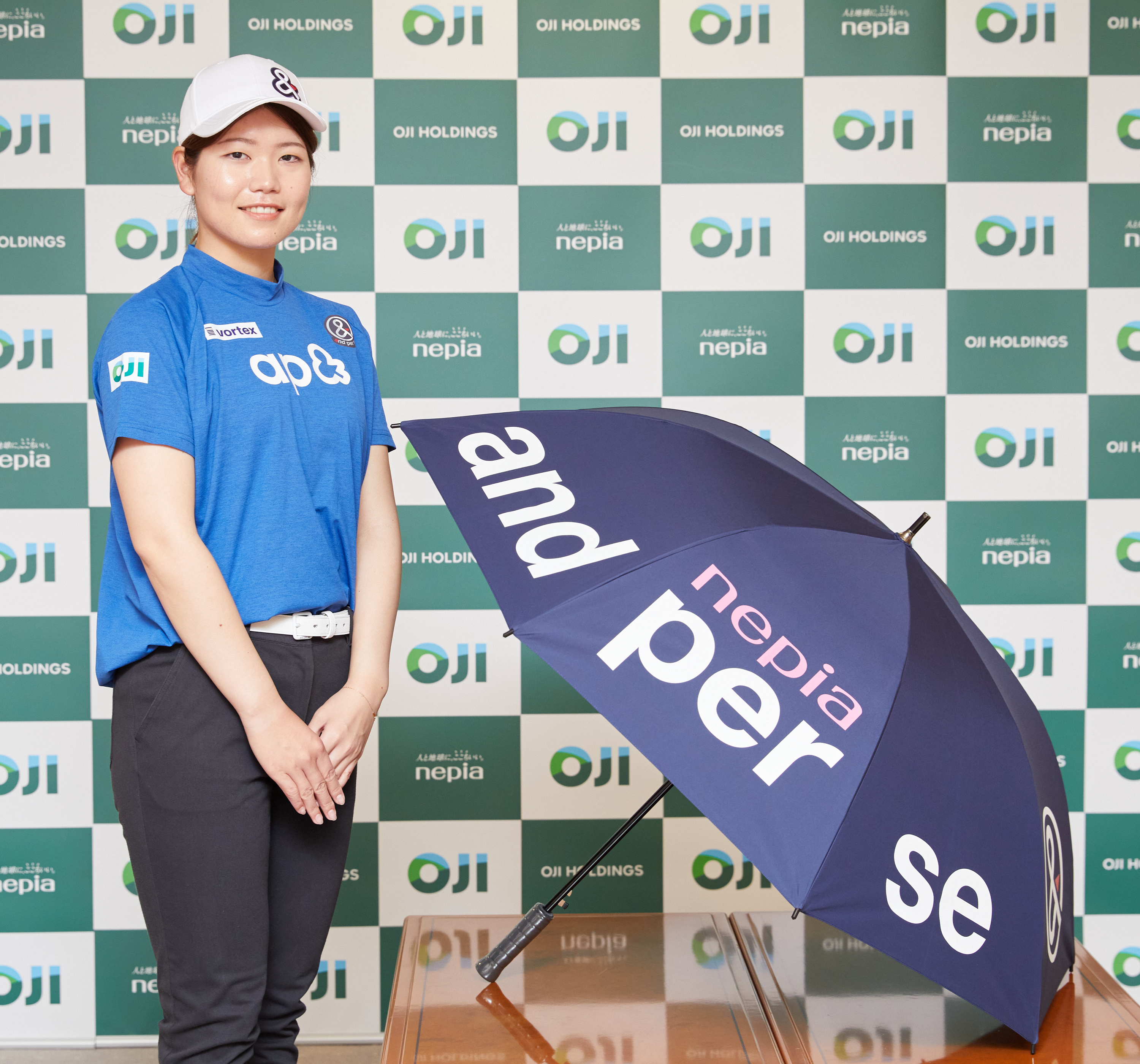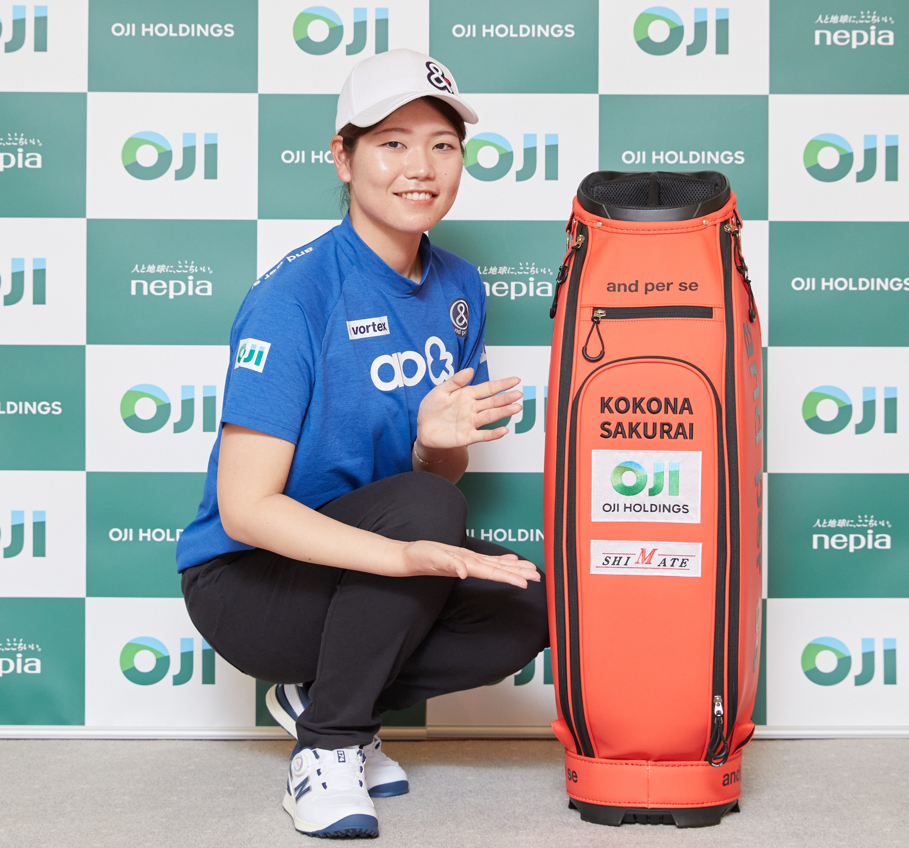 今後、櫻井選手は、王子グループのグローバルブランドマーク「OJI」および、当社グループ会社である王子ネピアのロゴ「nepia」が入った、ウェア(右袖)、キャップ(左つば)及び用具(キャディバッグ、アンブレラ)を着用・携行し、国内外のゴルフトーナメントに出場します。