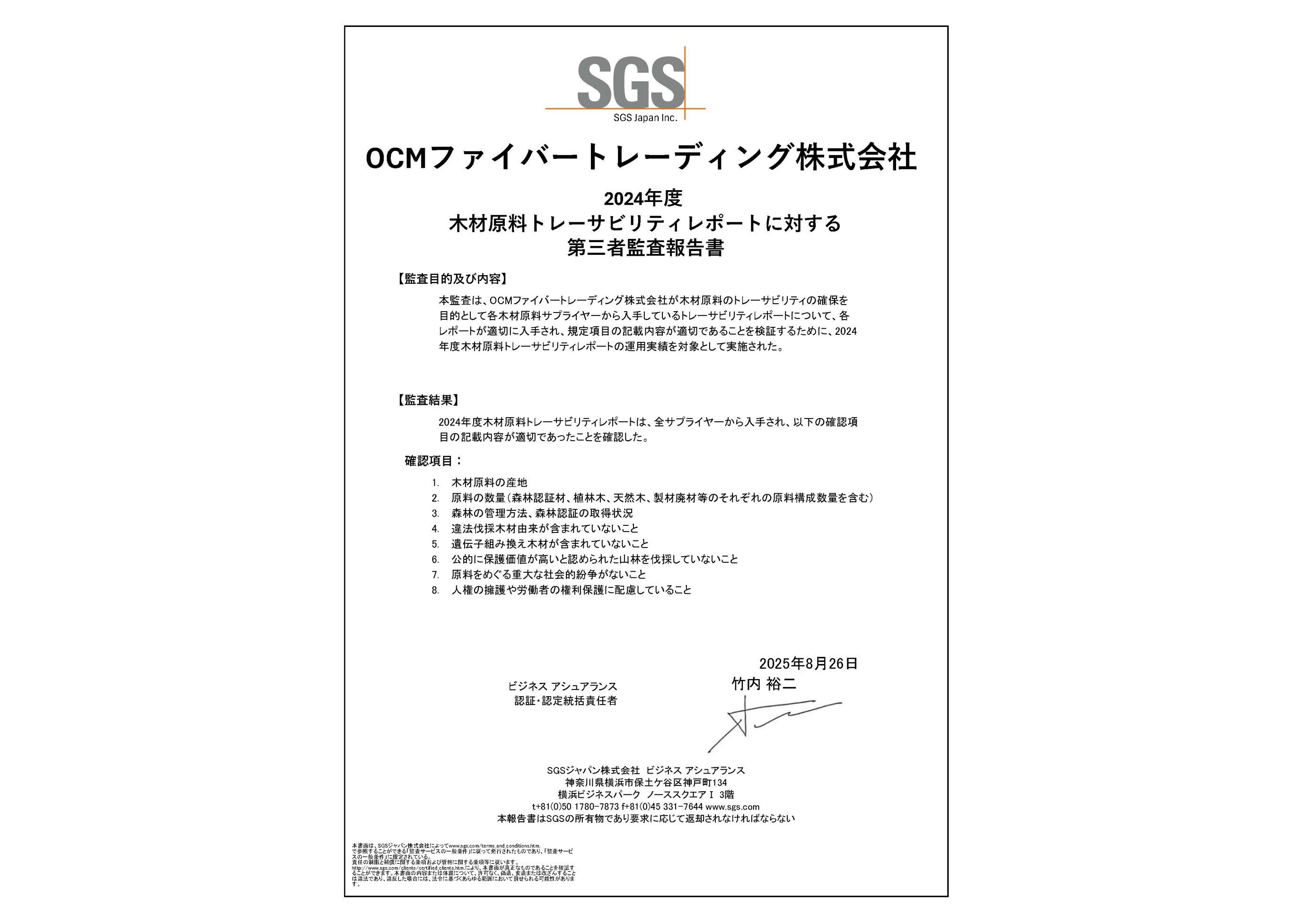 | 実績 | 古紙・パルプ・加工原紙・チップ・薬品・燃料(PKS、RPF他)・化石燃料・副資材(フィルム基材、インキ 他)に対するサステナビリティ調査の実施 |